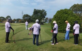 いつもの場所と違い平坦なグラウンド、大たたきする人はいない、悪くて4打、この日はホールインワンが続出、入らなかったのは1人か2人、旭さんが2本、夢爺さんも2本、英満ちゃんが1本、して勝敗はどうなった旭さんが逃げ切りで勝ち。