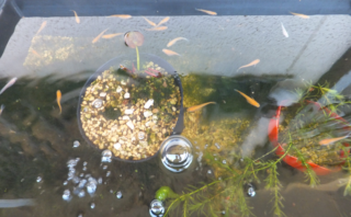 水は以前のままのを使い水槽は模様替え。この水槽が最後の採卵しふ化したメダカ、まだ1cm前後、多分30~50匹は泳いでいる。
