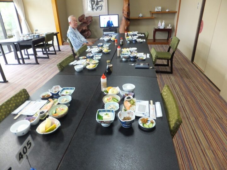 7時半の朝食、会場は宴会場と同じ、これに味噌汁が付きごく普通、昨夜の料理もごく普通で料金を少しでも安くしてほしいもんだが、ちなみに料金は一人2万円から数百円のお釣り、こちらの相場はよう分からんが高いのか?安いのか?よう分からん?。