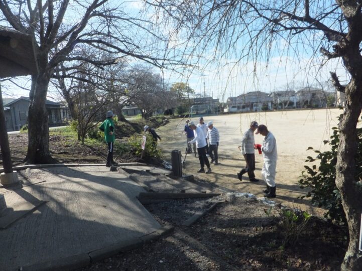 試合が終わり側溝掃除を30~40分、砂、桜の葉でほぼ埋まっている。半分ほどして残りは次回に。