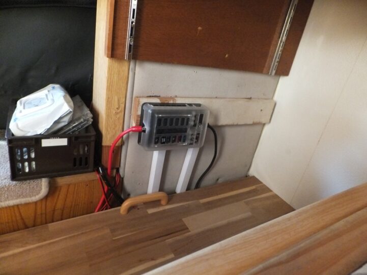 元の配線、ヒューズボックスは座席の下にありヒューズが切れた場合はお座敷化しているのをばらさなければならない、面倒なのですべてファンから照明他こちらで使う電気はすべて配線しなおし一か所にまとめた。