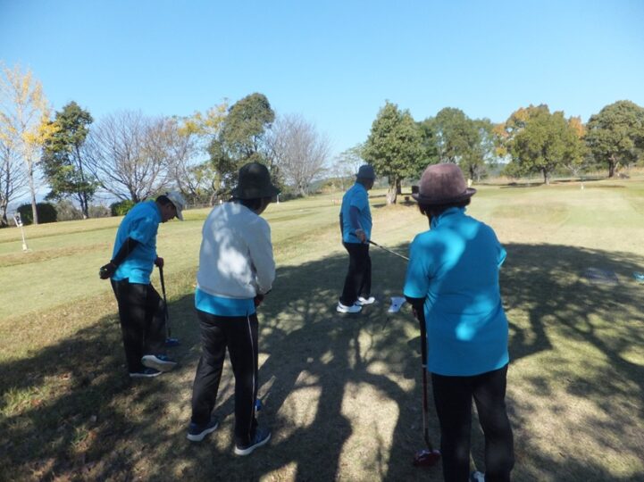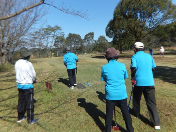 この日の参加者は少し寂しく5名、天気晴朗、朝からは少し冷えるが出る時着て来た上着を脱ぎプレイ、寒くも、暑くもなく気持ちよくプレイでいる。