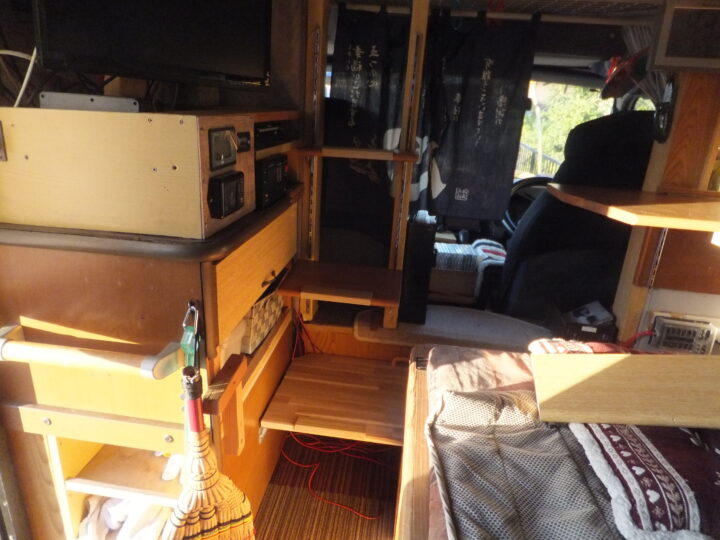 収納場所は多く2段目、3段目はほとんど使わないもの収納、まるでプロ仕上げだが、すべて夢爺さんのDIY、トイレは緊急用にと設置していたが、今回のように数日、又は不便な場所での使用は車中泊が快適にできることを改めて実感、それに今回のバルーンフェスタ車中泊で夢爺さんのDIYのすばらしさに感心した夢見る爺さんにポチッとお願いします。