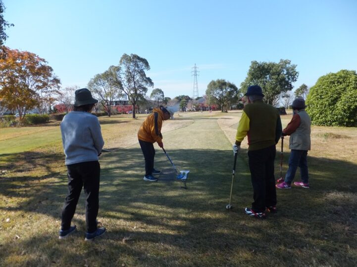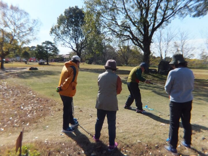 12月第一週何時もの週末、こちらのイチョウの葉すべて落下、綺麗な紅葉はまだ残っている。12月に入りしばらく寒い日が続いたが週末は絶好のグラウンドゴルフ日和。この日は5名でプレイ。