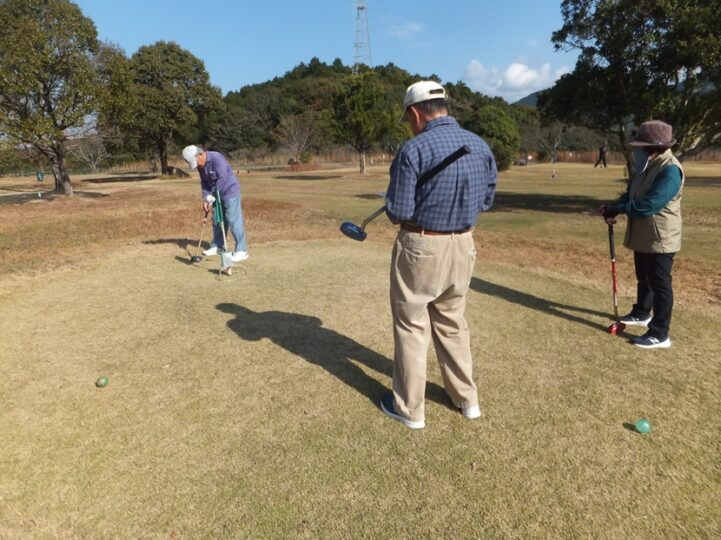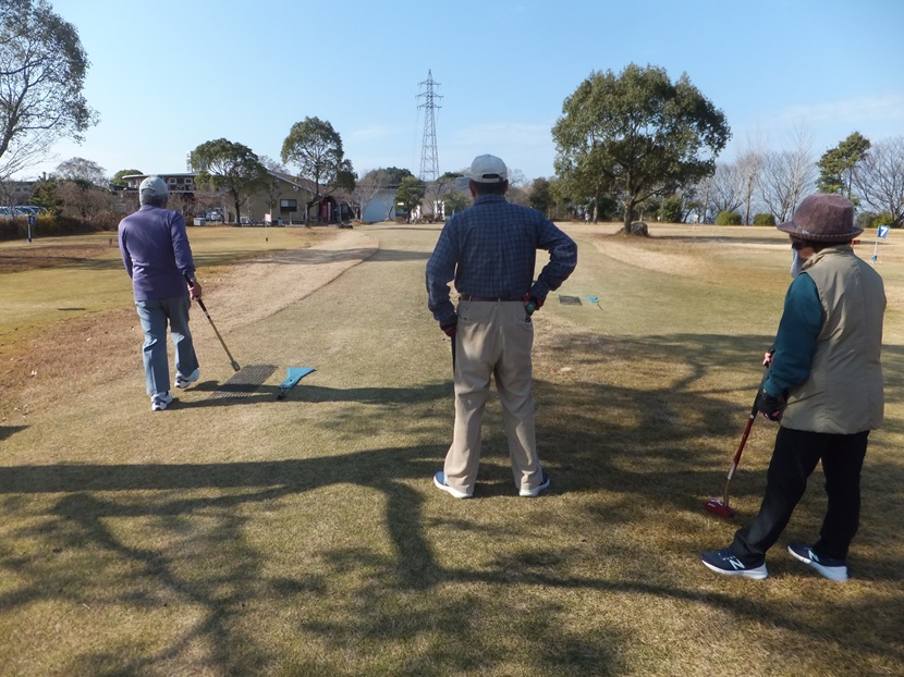 この日の参加者は4名、今まで一番少ないのでは?夢婆さんも地区の練習には参加したがまだ本調子ではないようでここまで。紅一点で英満ちゃんの母ちゃんが参加、この日の気温は20度越、プレイする前から上着は着ていないがそれでも汗がにじむほど、初夏のような暑さ。