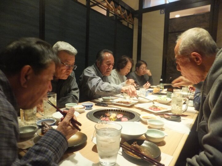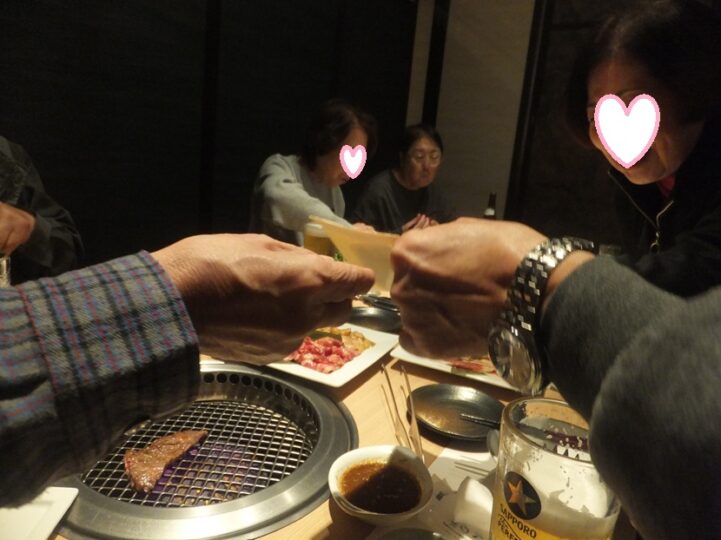 この日は”焼き肉や”で開催、昨年から予約していたので10名ゆっくり座れたが、予約なしはではかなりの待ち時間のようだ。”牛たん7皿”ホルモン7皿”カルビー7皿”など次から次へとメニューに載っているのほとんどたいらげる後期高齢者の爺&婆さん達、もうこれ以上は食えんと言うまで食って会計、夢爺さんの賞金で出そうかと思ったがここは割り勘で、今年も楽しい新年会ができました。