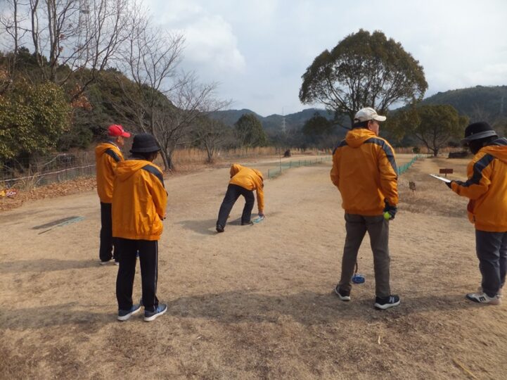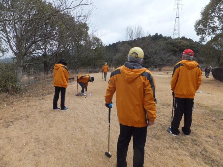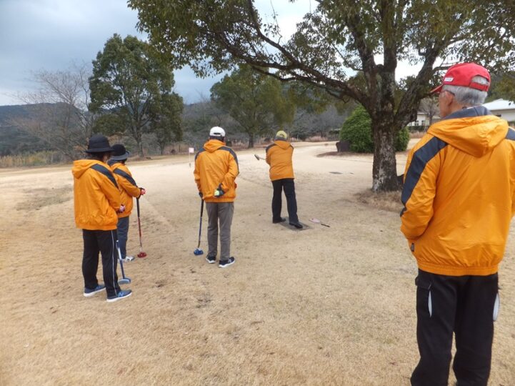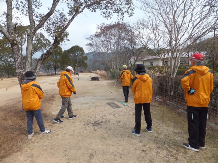 そんな寒い中、爺&婆さん達はハッスルハッスル、いつものグランドゴルフ、この日は6名でプレイ。