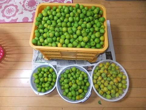 数年前にできたアパートから梅の木の葉が車に落ちるとクレームが入り小心者の夢爺さん、植えて40数年たち、多いときはこんなにも(30Kg以上?)取れていた梅。