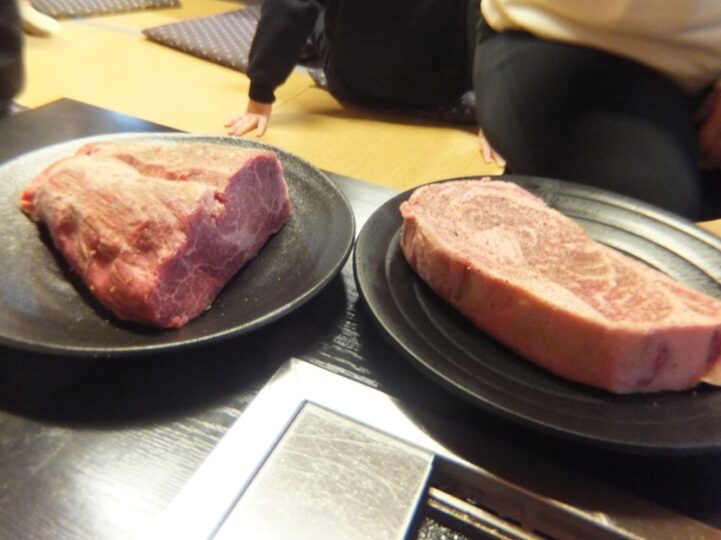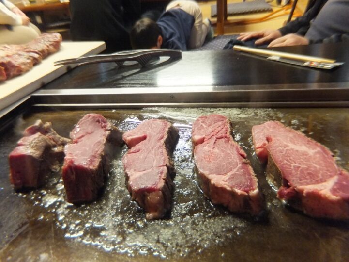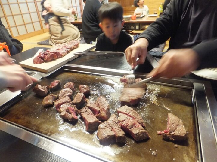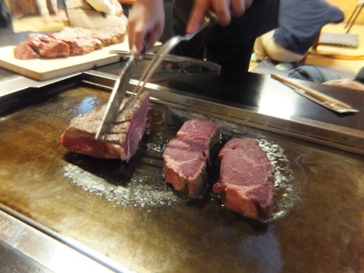 初めてみる光景、高級ステーキ店などのウインドに肉の塊が陳列されているのは見ることはあるが、その塊を焼くのは初めて。まずはひれ肉から。
