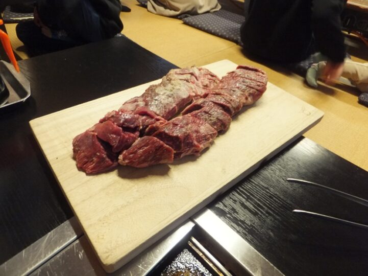 「ダ・ロープ亭」は芦北町の自然豊かな山奥で美味しい水、空気、食材で育てられたこだわりのお肉を提供するお店、希少部位の極上ヒレ肉を㎏単位で焼くのがお店の特徴、頼むのは㎏単位で註文、なず来たのは極上ヒレ肉1kg相当、熟成極上ヒレ肉500g相当。